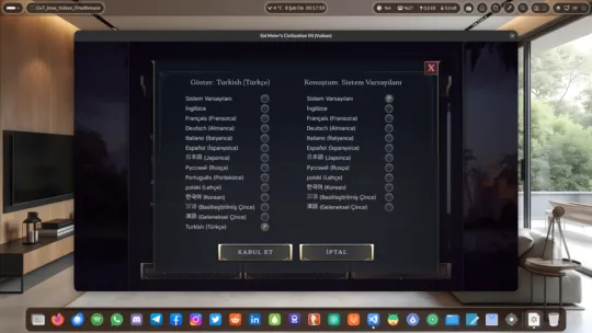 - Oyunu tekrar İngilizce yapmak isterseniz ayarlar bölümünden kolaylıkla yapabilirsiniz. Bahsettiğimiz gibi bu Civilization 7 Türkçe yama dosyası oyununuzda orijinal dil dosyası üzerinde herhangi bir değişiklik yapmıyor. Bu sayede orijinal dile de istediğiniz şekilde geri dönebiliyorsunuz.
