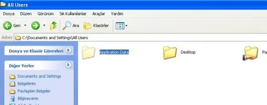 - ve "Tamam" deyin. Bu işlemi yaparak normalde görünmeyen "All users" içerisinde ki "Application Data" klasörünü göreceğiz.