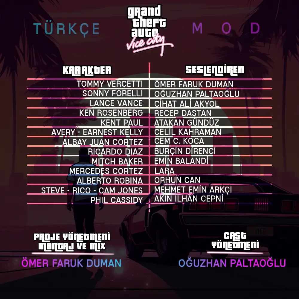 Grand Theft Auto kısaca GTA serisinin en popüler oyunlarından biri olan GTA Vice City için hazırlanmış olan Türkçe Dublaj Yaması. Oyunu tüm görevlerini baştan sona tamamen Türkçe dublaj ile oynayabilirsiniz. Ayrıca Türkçe Dublaj yaması Windows 11 uyumlu olarak çalışır ve Türkçe Yaması dahildir.