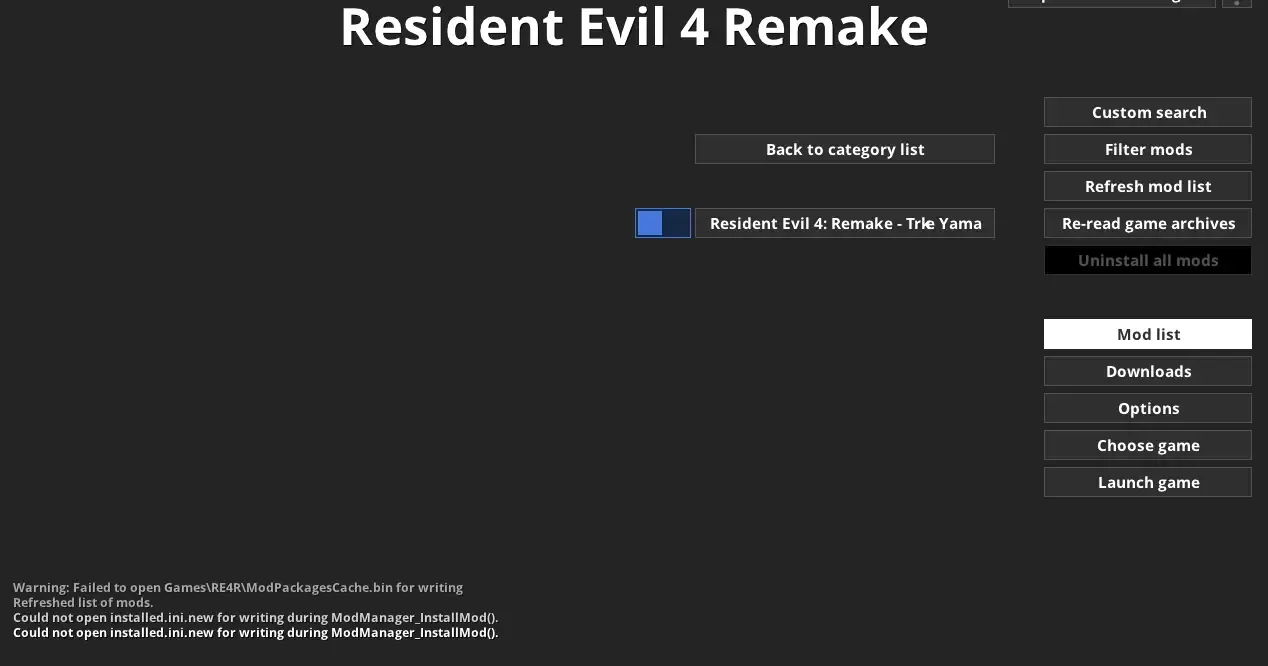 - Resident Evil 4: Remake - Turkce Yama adlı modun tikini aktifleştirin.
