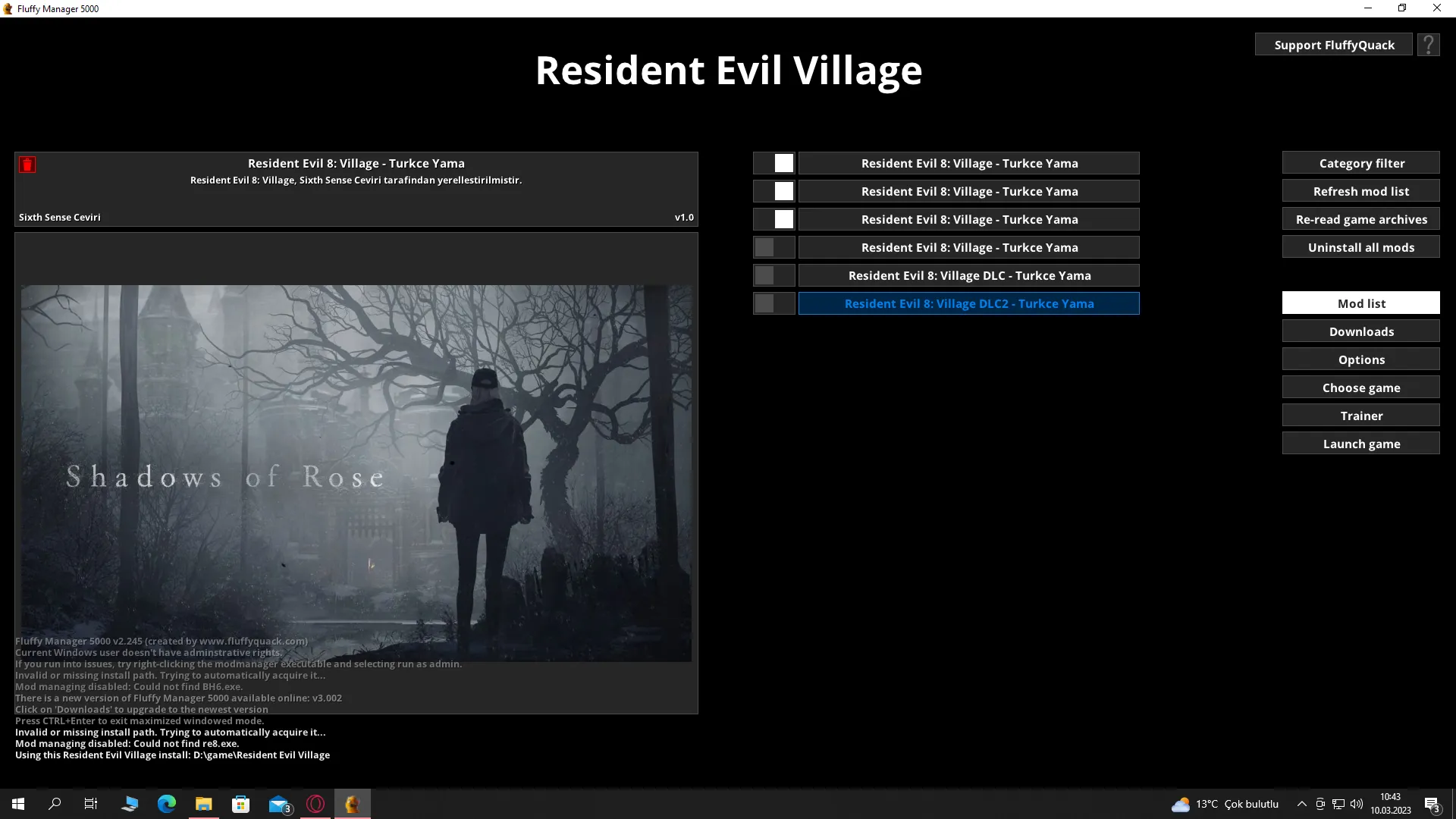 - 9. Adım: “Sixth Sense Ceviri- Resident Evil 8 Turkce Yama” seçeneğinin sol tarafında yer alan kutu şekline tıklayarak işaretli hale getirin.